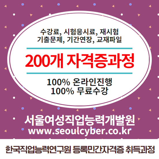 노후에필요한자격증 을 온라인으로 취득할 수 있는 서울여성직업능력개발원 상담실입니다.